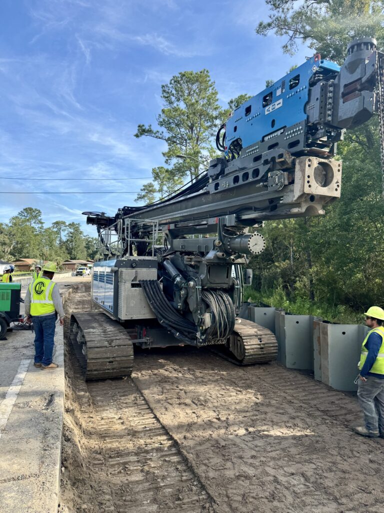 The Harts Road improvement project in Jacksonville required a compact yet powerful piling solution capable of working efficiently in tight corridors and around active utilities. The contractor selected the MFE ABI TM17 for its exceptional maneuverability, fast setup, and ability to operate where larger rigs would struggle.